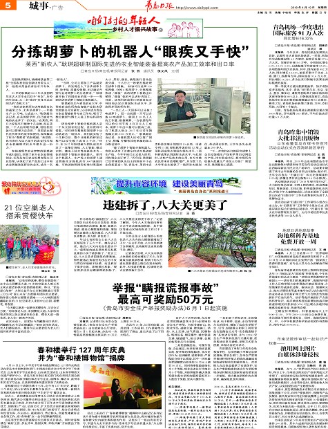 21位空巢老人搭乘赏樱快车春和楼举行127周年庆典并为“春和楼博物馆”揭牌分拣胡萝卜的机器人“眼疾又手快”违建拆了,八大关更美了举报“瞒报谎报事故”最高可奖励50万元青岛机场一季度进出国际旅客91万人次青岛昨集中销毁大批非法出版物海地所科普基地免费开放一周擅用网上图片自媒体涉嫌侵权