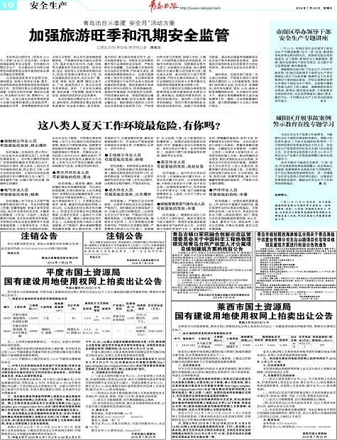 加强旅游旺季和汛期安全监管这八类人夏天工作环境最危险,有你吗?市南区举办领导干部安全生产专题讲座城阳区开展事故案例警示教育在线专题学习
