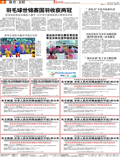 羽毛球世锦赛国羽收获两冠黄海主场胜申鑫夺冲超主动权省运会沙排比赛在青结束青岛女将包揽甲组冠亚军今日海浪水文预报:“夜色美”丰富青岛夜生活青岛音乐厅青少年交响乐团载誉归来本周三家乡献艺“海尔兄弟”有了亲子舞台剧