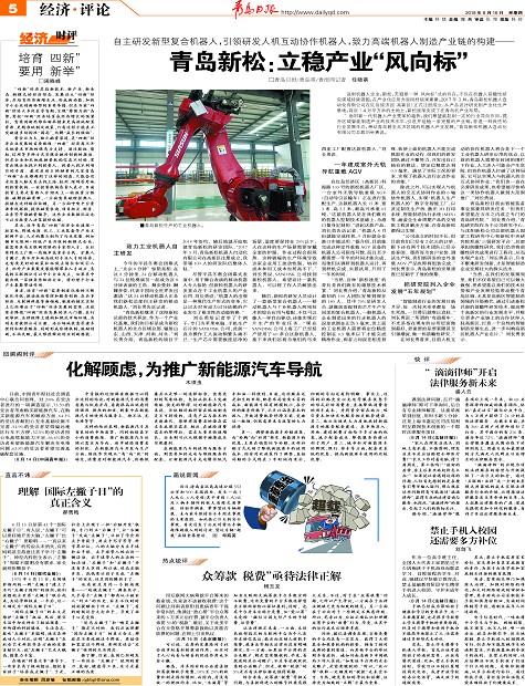 说到机器人企业,新松,无疑是一种“风向标”式的存在。不仅在机器人前瞻性研究领域持续领跑,在产业化应用方面同样硕果累累。2017年3月,青岛新松机器人自动化有限公司在红岛经济区(高新区)正式注册成立,从产品设计研发到产业化生产基地,将近1.4万平方米的土地上,新松逐渐完成了在青岛的产业布局。“面对新一代机器人产业变革的趋势,我们希望能起到一定的行业导向作用,提升区域智能制造产业的技术水平,引进并培植一条完整的产业链,营造一种良性的行业发展生态,带动青岛甚至北方区域的机器人产业发展。”青岛新松机器人自动化有限公司总裁刘长勇说。