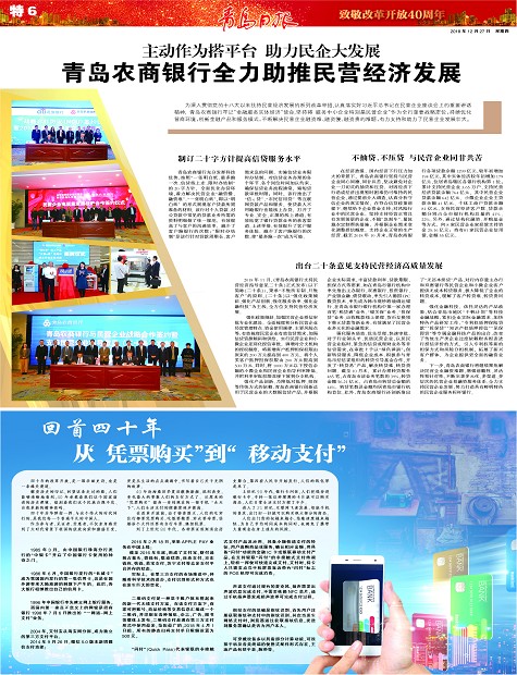 青岛农商银行全力助推民营经济发展回首四十年 从“凭票购买”到“移动支付”