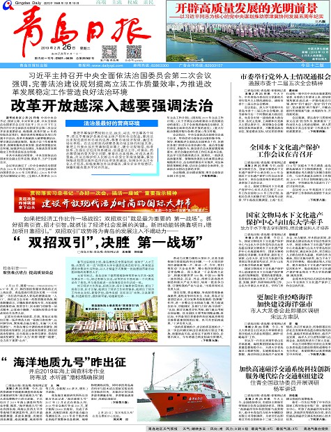 本报 2月 25日讯 今日上午,国家文物局水下文化遗产保护中心与山东大学合作签约仪式在青岛蓝谷国家文物局水下文化遗产保护中心北海基地举行。国家文物局副局长宋新潮,市委常委、副市长王家新,山东大学、省文化与旅游厅负责同志等出席签约仪式,并为“山东大学教学科研基地”揭牌。