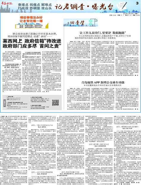 莱西网上“政府信箱”待改进政府部门应多尽“首