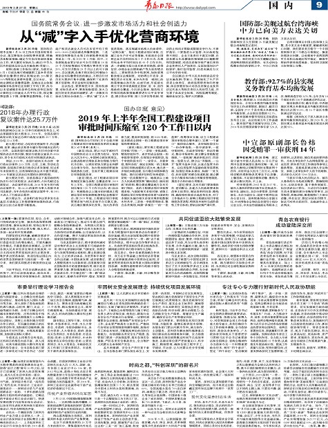 2019年上半年全国工程建设项目审批时间压缩