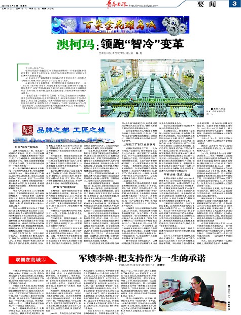 大规模个性化定制是澳柯玛智能互联工厂的诉求,也精进着澳柯玛制造的质量追求,从生产研发一直延续到售后服务。“如今的澳柯玛不再是单纯的卖产品,而是卖服务。”张斌介绍了澳柯玛72小时响应用户维修需求的“三个一”服务体系:即一天生产配件、一天空运到地、一天完成维修。这样的速度和质量不仅让澳柯玛在商用市场上保持领先地位,还让澳柯玛成为更多商用客户选择的维修服务商,持续获得国标 “五星级品牌”“五星级售后服务”双五星认证。
