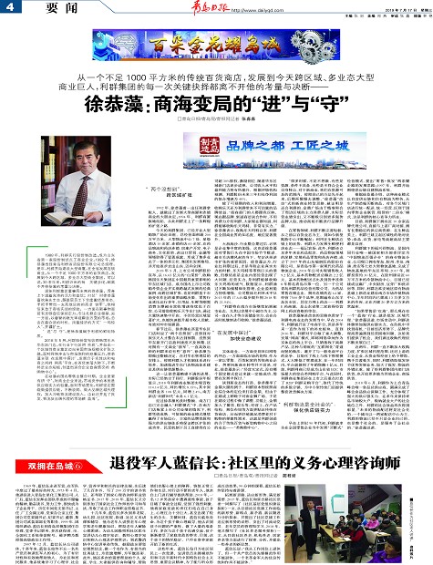 1988年,利群实行股份制改造,成为山东省第一家股份制试点工商业企业。1992年,徐恭藻出任青岛利群百货股份有限公司总经理,是年,利群开始建设大型商厦,在全省发展连锁商业。从一个不足1000平方米的百货商店,发展到今天跨区域、多业态大型商业集团,可以说,30多年来,利群迈出的每一关键步伐,都离不开徐恭藻的考量与决断。