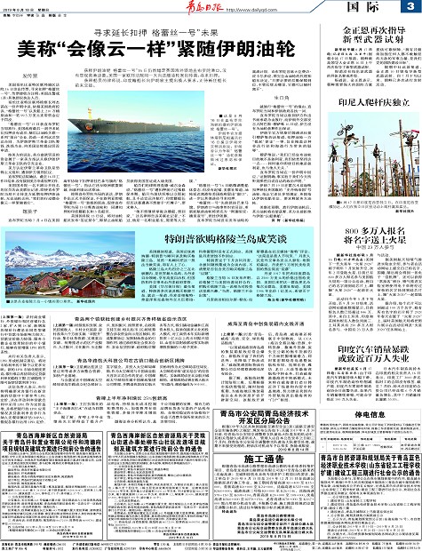 (上接第一版)打造‘青岛-威海’高效、安全、绿色精品航线”。