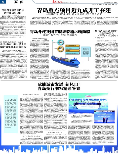 本报5月15日讯 我国首艘具有智能航行能力的集装箱运输商船“智飞”号今天在青岛开工建造,为我市正在推进的经略海洋攻势、国际航运贸易金融创新中心建设攻势再增新亮点。