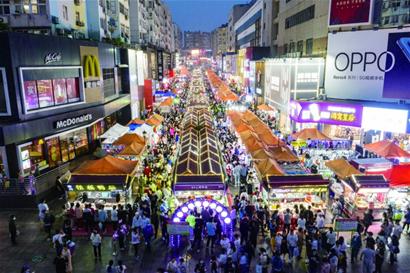 夜经济繁荣程度是一个城市经济开放度、活跃度的重要标志,也是提升市民生活品质的重要载体。作为青岛规范化的“老牌”夜市,和兴路夜市从2000年开始形成了以百货为主的夜间集市。2016年,为适应年轻人的消费偏好,打造了小吃一条街。目前,夜市共有300多个摊位,其中百货类摊位200多个,小吃类摊位100多个,从业人员600余人。