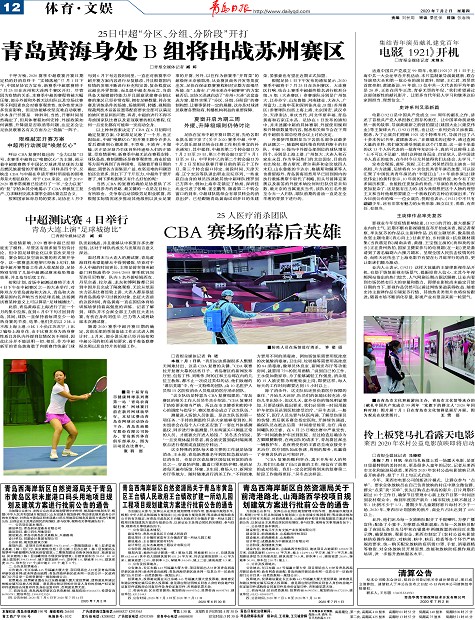 青岛黄海身处B组将出战苏州赛区