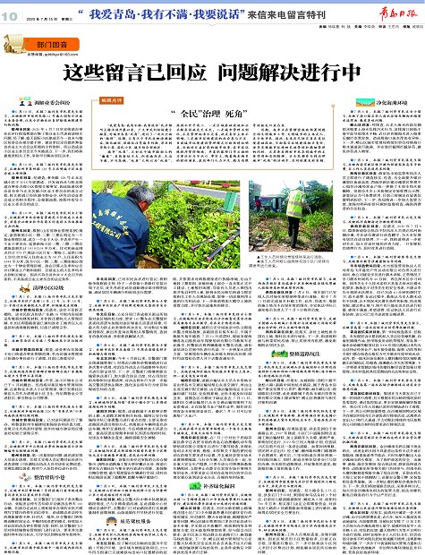 ●7月1日,本报15版刊登市民华先生留言,反映西海岸新区琅琊台路琅琊台酒厂家属院环境卫生管理不善问题。