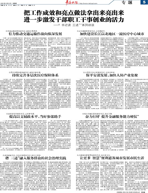 “‘三述’开展以来,我们坚持党组班子成员带头述、机关各处室和单位负责人重点述、党员干部广泛述,切实增强基层党支部政治功能和组织力,充分发挥战斗堡垒作用,引导广大党员干部不断提升开放的意识、素质和能力,以建设长江以北地区一流医疗中心城市为目标,一手抓实疫情防控,一手抓好改革攻坚,统筹推进疫情防控和经济社会发展,燃烧激情、建功青岛。”市卫生健康委党组书记、主任隋振华说。