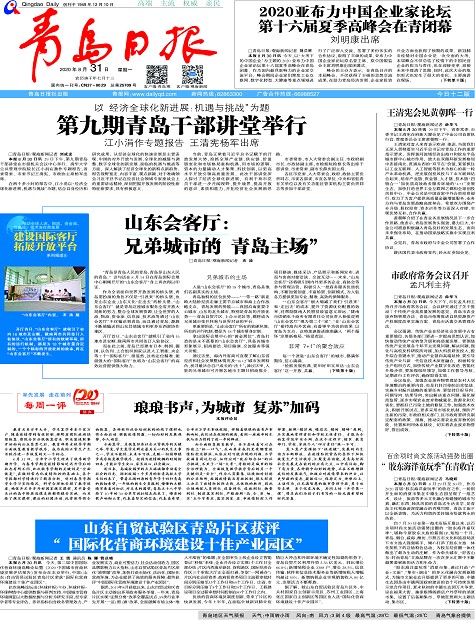 第九期青岛干部讲堂举行山东会客厅:兄弟城市的“青岛主场”琅琅书声,为城市“复苏”加码山东自贸试验区青岛片区获评“国际化营商环境建设十佳产业园区”青岛地区天气预报2020亚布力中国企业家论坛第十六届夏季高峰会在青闭幕王清宪会见黄朝晖一行市政府常务会议召开“胶东海洋童玩季”在青收官