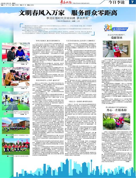 “我们坚持从实际出发,发挥群众首创精神,结合社区民情,组建队伍、做好评议、志愿帮扶、文化乐民、传承文明,通过新时代文明实践站搭建社区广阔服务平台,推进社区服务制度化、常态化。”李沧区委宣传部常务副部长、文明办主任吉素琴说。