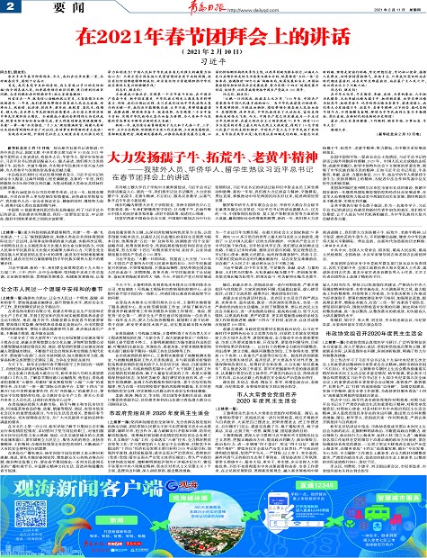 在2021年春节团拜会上的讲话