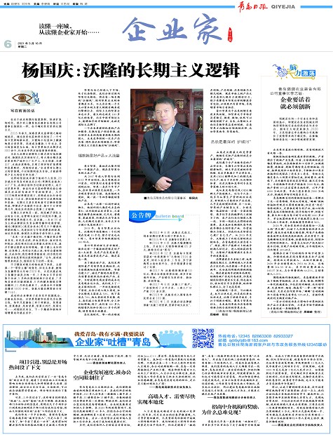 在这个追求短期内批量复制、快速扩张的时代,很少有人像青岛沃隆食品有限公司董事长杨国庆一样,在不确定性里坚持长期主义。