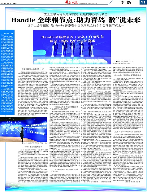 作为全球工业企业广泛使用的首选主流标识体系,Handle系统已在上合示范区落地生根。今年4月28日,在2021数字工业高层论坛上,Handle全球根节点(青岛)正式启用,其将围绕标识解析创新应用总部基地建设,构建 Handle标识创新应用生态环境,打造新型工业示范基地,助力青岛建设世界工业互联网之都。