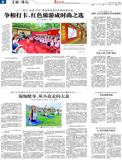 在花样繁多的各种健身项目中,瑜伽大有“杀出重围”之意,正成为体育消费市场新宠。据《2021中国健身趋势》报告,在2021年全球健身趋势排名榜中,瑜伽排第15名。在最新发布的《2021中国瑜伽行业报告》中,2021年中国瑜伽场馆规模达到42350家,延续多年的增长趋势,比2020年增长9.1%。其中包括青岛在内的15个新一线城市,共有瑜伽场馆10817家,占全国瑜伽馆总量的四分之一。