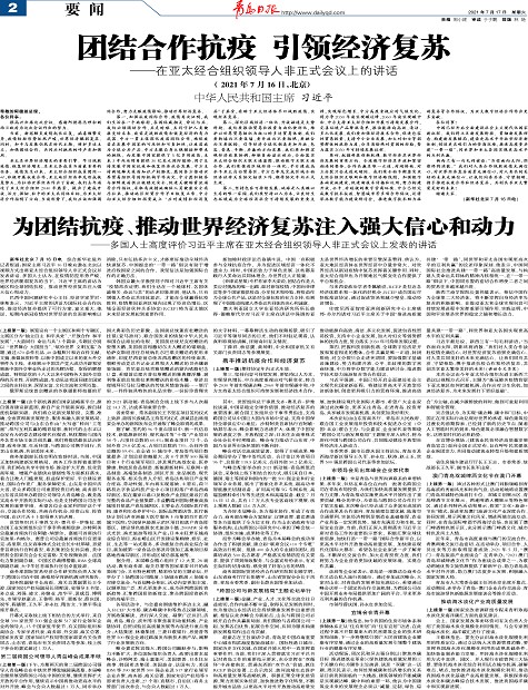 为团结抗疫、推动世界经济复苏注入强大信心和动