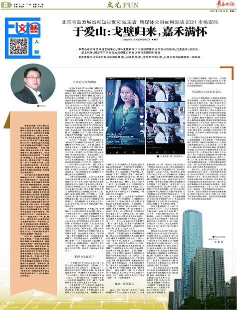 每天早上,于爱山步行四公里上班,感受他喜爱的这个城市。“我真的挺喜欢青岛。从北京到青岛,工作的舒适度、生活品质提升了不少。”作为连续创业者,于爱山的成长历程充满了自我否定、自我革命,符合新媒体行业高速更迭的节奏。“做百年企业对新媒体公司来说确实比较困难,我们的定位是起码要做二十年、三十年。公司的壳子一直在变,但是想做好内容的核心一直没变。社会对新媒体行业接受度越来越高,我们可能会引入资本、考虑上市,但这不是我们近期的规划,我们还是要根据整个行业的发展来制定规划。”