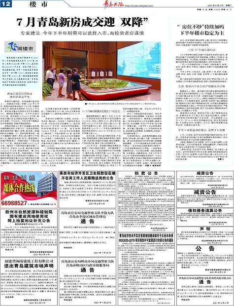 据青岛网上房地产数据显示,2021年7月青岛新房成交共计14077套,环比6月份(16258套)下降13.7%;成交面积1581037.3平方米,环比下降10.5%。同比数据双跌,今年7月新房成交量同比去年7月下降12.68%,新房成交面积同比下降15.06%,在一路高歌猛进的楼市上半场后,以上数据标志着7月青岛房地产市场进入传统淡季,也预示着下半年楼市面临更多的挑战。