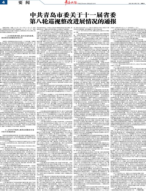 中共青岛市委关于十一届省委第八轮巡视整改进展