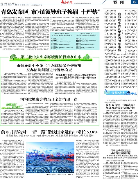 前8月青岛对“一带一路”沿线国家进出口增长5