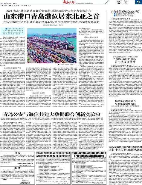 山东港口青岛港位居东北亚之首