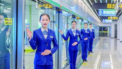 文明引导:青岛地铁千余名志愿者常态化开展文明引导志愿服务,为来往乘客提供指引、问询、购票、帮扶等服务内容,为维护车站高峰时段的乘车秩序提供有力保障。