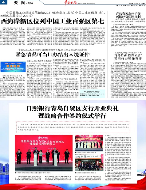 西海岸新区位列中国工业百强区第七