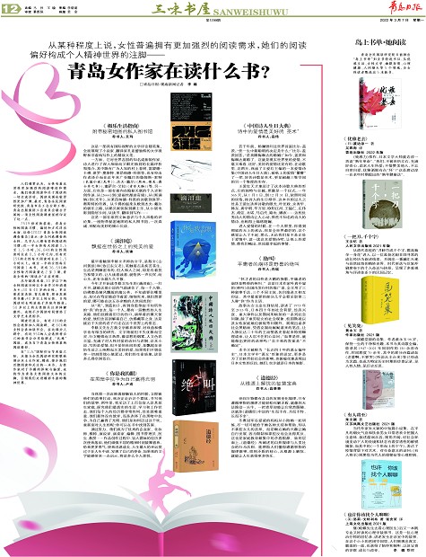 在“三八”国际妇女节来临之际,本报与全民阅读研究院联袂部分本土女作家,精选、推介她们近期阅读和关注的一本书。女性作家对于书籍的择取与偏爱,也将作为青岛女性阅读文本的注脚,引领我们走进精彩丰盈的精神世界。