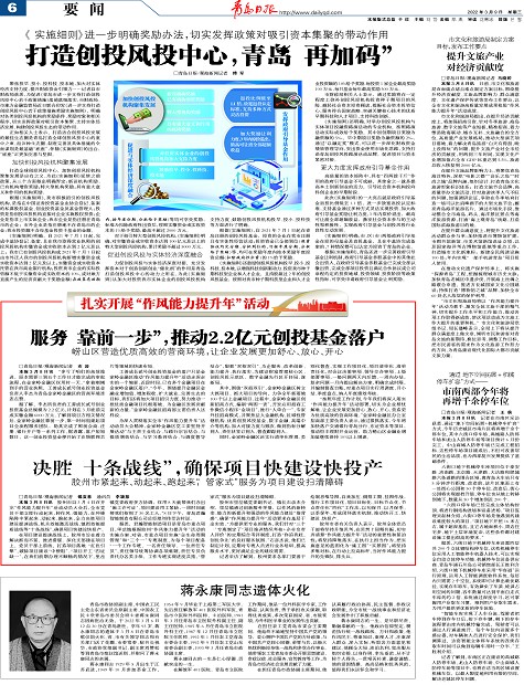服务“靠前一步”,推动2.2亿元创投基金落户