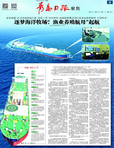 “‘国信1号’投入运营后将引领中国深远海养殖浪潮,打造一个深远海养殖的‘中国样本’。 ”中国水科院渔机所首席科学家谌志新说。对于正在打造引领型现代海洋城市、怀抱“全球海洋中心城市”目标的青岛而言,“国信1号”将成为青岛海洋产业的一张“新名片”。