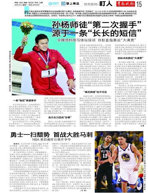 孙杨师徒“第二次握手”源于一条“长长的短信”