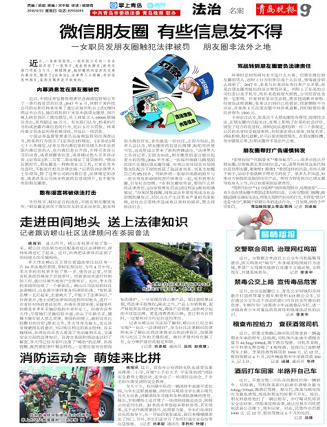 未经核实、疑似谣言的消息,不能在朋友圈里发布。“朋友圈是依托于微信好友的关系而存在,能互相加为微信好友,首先就是一份信任,正因为如此,很多人会认为,朋友圈里的信息比微博、贴吧里的更可信,这也给谣言带来了新的传播途径。”法律界人士告诉记者,正因为如此,朋友圈里的谣言能引起更大的恐慌:2016年年底,一张福州南路马路塌陷的图片在微信朋友圈传播。市南公安分局在市局网警支队配合下很快抓获了造谣者刘某。刘某为炫耀自己的PS技术,用软件将一张福州南路的照片与一张灾难电影海报的图片拼凑在一起,发布到朋友圈,引发社会恐慌。 “在朋友圈里传谣,要负什么样的法律责任,《治安管理处罚法》和《刑法》都有明确规定。”办案民警提醒,网络谣言非常容易成为社会恐慌的爆发点,对民众生产生活带来严重的负面影响,对社会正常秩序造成难以预料的破坏,警方将依法打击。
