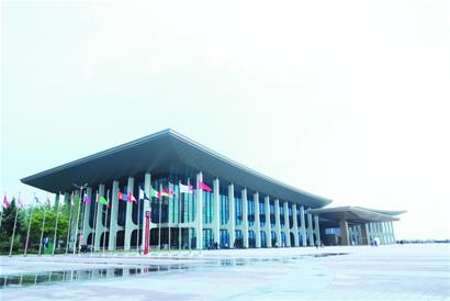昨日,记者跟随中建八局的建设者来到奥帆中心,走进青岛国际会议中心,近距离感受了该场馆的大国风度。 260多米宽的主体 “中间低两翼翘”,既呼应了东侧燕岛山和西侧的海湾,保持了连山接水、山水一体的自然结构,又以中国传统的飞檐廊阁,为建筑赋予了海鸥展翅的外形,蕴含着迎风而起、一飞冲天的激情。 40根“上合柱”队列整齐,庄重宏伟,下部通过横梁连接,并延伸至主会场,将奥帆中心的“帆”主题与上合峰会的“合”主题紧密结合,展现了上合组织成员国合作托起安全平台,共同发展的精神理念。