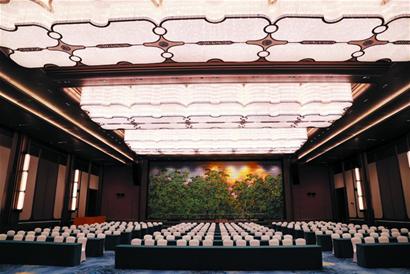 走进建筑内部,无处不体现和彰显着中华气度。青岛国际会议中心共有两层,一层层高9.6米,二层层高13米。一层包括迎宾大厅、黄河厅、安仁厅、心海厅等,二层包括泰山厅、尚和厅、齐鲁厅等。在迎宾大厅,一幅泰山主题国画映入眼帘,礼遇尊朋。屋顶的81块藻井发光天花以九为基数分隔,饰以图案,寓意喜悦、友好。黄河厅以“智”为本,以“亭”为体,八角亭造型由下而上向中间聚合,象征着上合组织汇聚八方。安仁厅则是以“信”为本,以“堂”为体,光照明快,空间色调柔和。