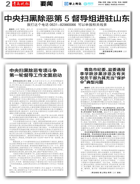 青岛市纪委、监委通报李学跃涉黑涉恶及有关党员
