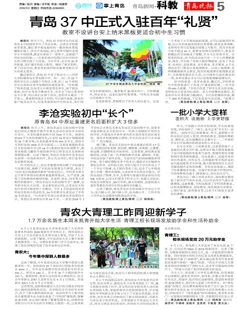 9月1日是青岛农业大学和青岛理工大学两所驻青本科高校2018级新生开学的日子,两所高校合计有1.7万余名新生在本周末涌入青岛,开始了人生的新航程。记者了解到,今年是青农大史上集中报到人数最多的一年;为帮助更多寒门学子完成学业,青理工校长则现场发放了助学金和生活补助。