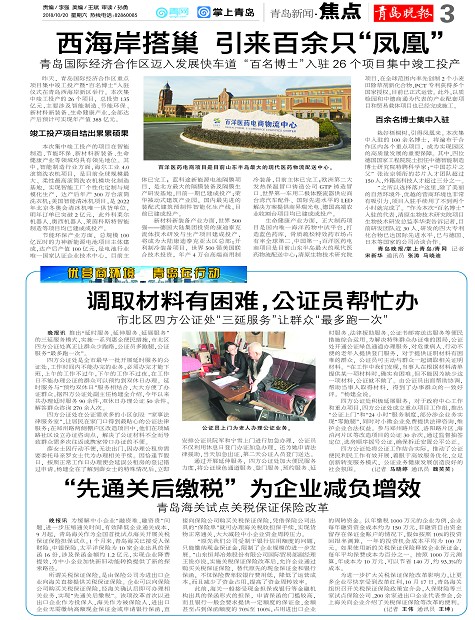 西海岸搭巢 引来百余只“凤凰”调取材料有困难,公证员帮忙办“先通关后缴税”为企业减负增效