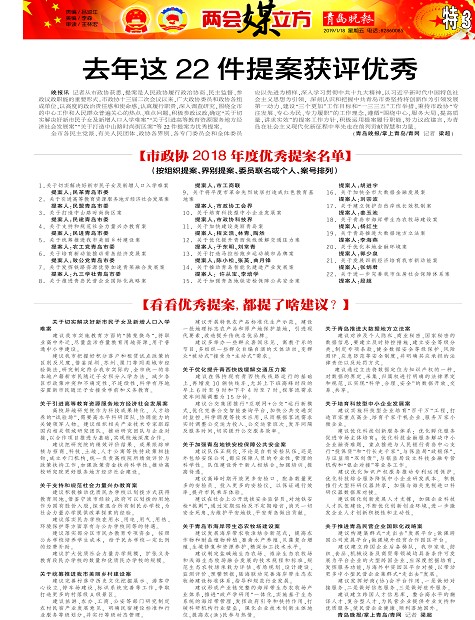 去年这22件提案获评优秀【市政协2018年度优秀提案名单】【看看优秀提案,都提了啥建议?】