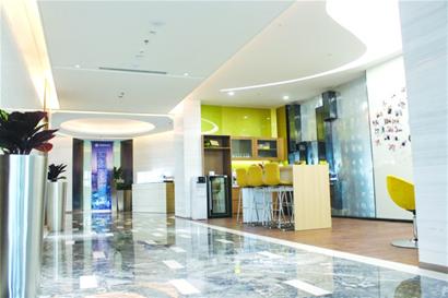 日前,记者来到刚刚落成的青岛国际航运中心探访。该项目位于中央商务区核心地带,远远地在胶宁高架路上,这座形似“定海神针”的建筑便映入眼帘:蓝色的玻璃幕墙在阳光下闪耀着光泽,宛若波光粼粼的海面。走进大厅,暖黄的灯光打在主色调为白色和金色的镜面石材上,感觉优雅温馨。登上电梯,只需42秒,就可“一键”到达楼顶,十分便捷。