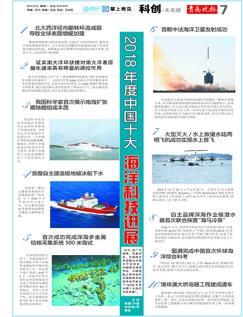2018年度中国十大海洋科技进展