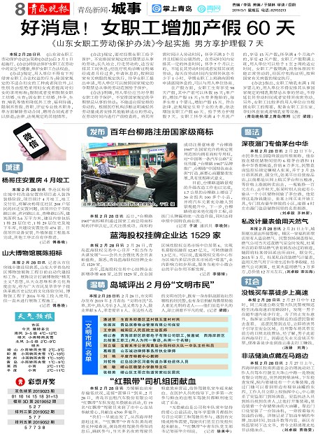 岛城评出2月份“文明市民”
