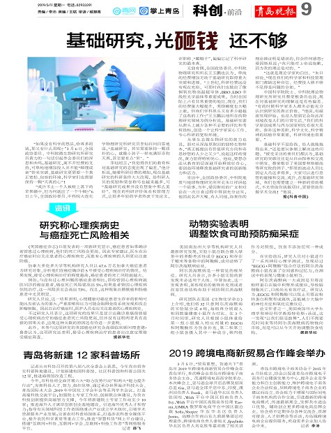 研究称心理疾病史与癌症死亡风险相关基础研究,光砸钱还不够青岛将新建12家科普场所动物实验表明调整饮食可助预防痴呆症2019跨境电商新贸易合作峰会举办