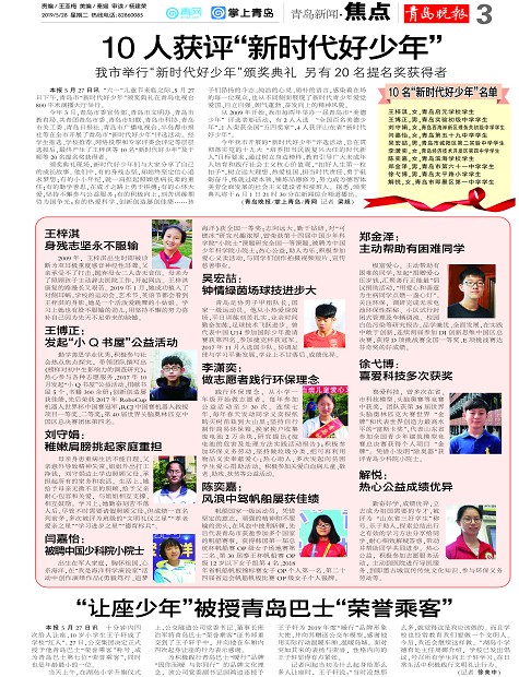 10人获评“新时代好少年”