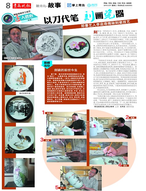 以刀代笔刻画瓷器