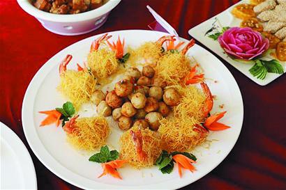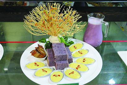 芋头味道软糯,不仅能够蒸着吃,和肉类海鲜搭配更能体现芋头的“香粘软滑”特点。连续两年的白庙芋头节,重头戏之一就是白庙芋头烹饪大赛。在芋头烹饪大赛上,记者看到,小小的芋头被做成上百种菜品,煎炒蒸煮炸炖多种做法都有。评委王振才曾经担任过青岛酒店管理学院烹饪学院的院长,对于烹饪技术有极高的发言权。他告诉记者,自己只知道芋头能够和很多食材搭配,但是也没有细心专门研究,在芋头烹饪大赛上,被白庙芋头花样百出的做法惊呆了。看到厨师的菜品,他感觉学无止境,只有把食材的营养和做法研究清楚了,才能更好地扩大食材销量。
