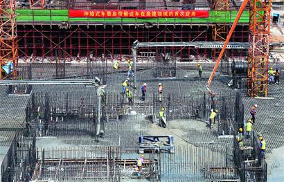 该项目还对爬模进行了改进和技术革新。爬模是爬升模板的简称,依附在建筑竖向结构上,随着结构施工而逐层上升,这样模板可以不占用施工场地,也不用其他垂直运输设备。另外,它装有操作空间,施工时有可靠的安全围护,故可不需搭设外脚手架。叶现楼介绍,“经过改进和优化布局,爬模上可以创造出140平方米的施工作业面,这比很多采用顶模的施工作业面还大。 ”此外,项目每层桁架层都有8条牛腿突出外墙,“按照常规流程来说,每次都需要把爬模打开,施工完成后进行封闭。在高空进行这种施工难度很大。 ”叶现楼自豪地说,项目部经过自主研发,将牛腿和爬模相交处设计成可开合式的,在避免施工风险的同时还极大提高了施工效率。 青岛晚报/掌上青岛/青网 记者 傅春晓摄影 徐常青