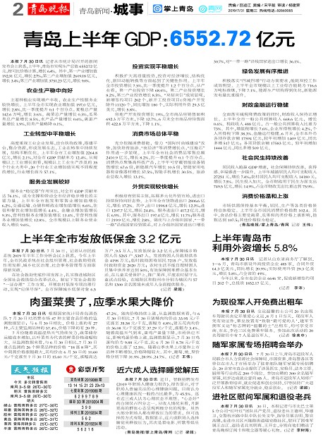 青岛上半年GDP:6552.72亿元